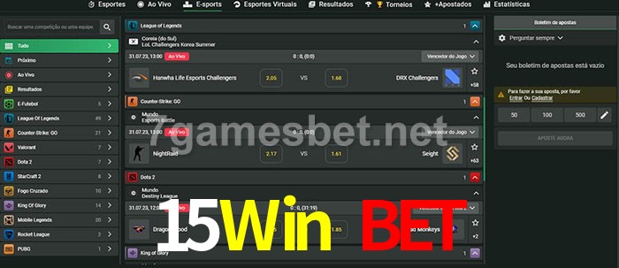 O 15Win Bet oferece uma grande seleção de opções de apostas em e-sports com probabilidades competitivas